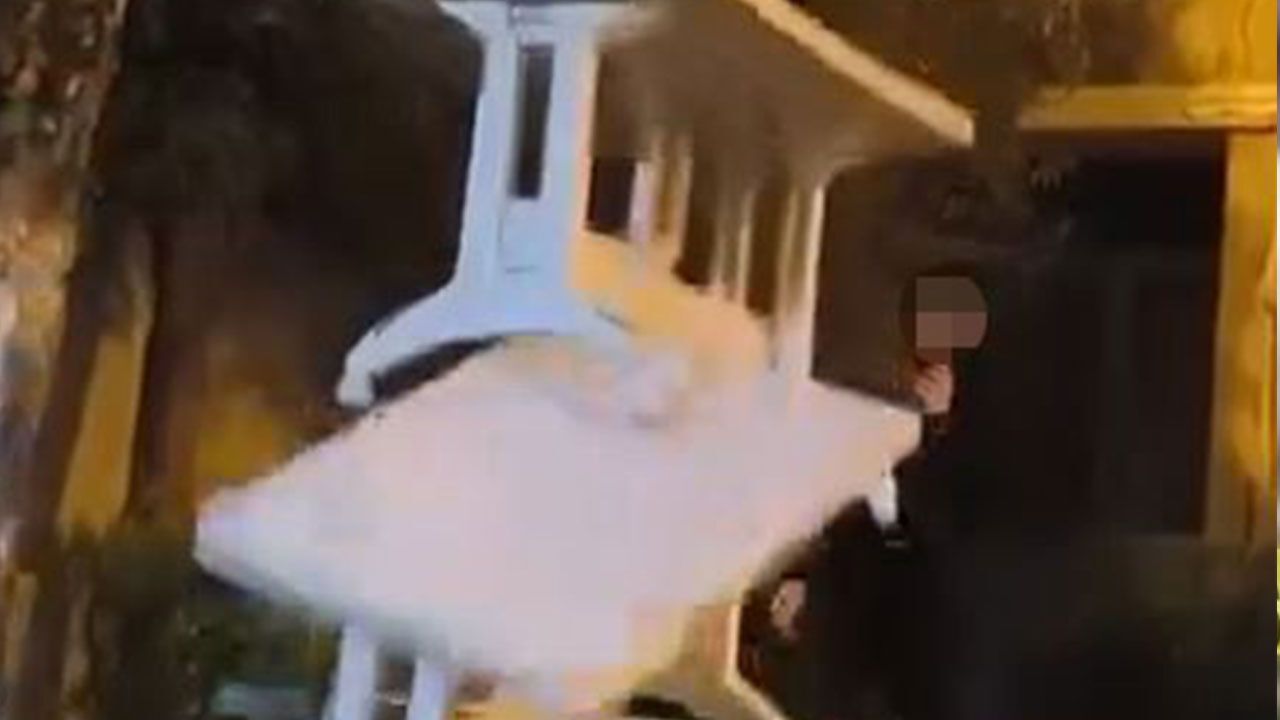 Küçükçekmece’de çocuklar bir caminin bahçesindeki masalara zarar verdi. Çocuklar polis ekipleri tarafından yakalanırken, yaşanan o anlar cep telefonu kamerasına yansıdı.